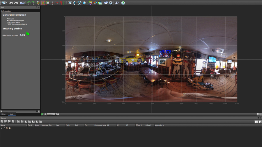 De zes foto's per opname worden met behulp van panoramasoftware aan elkaar verbonden.